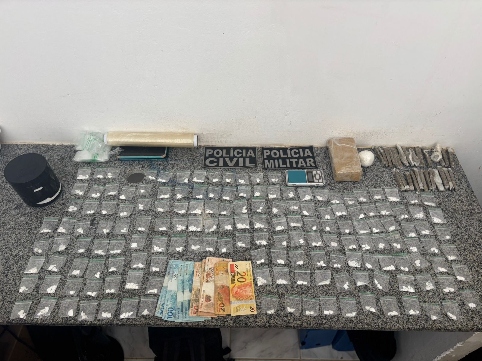A prisão e as apreensões Durante as diligências, os agentes localizaram um imóvel utilizado como ponto de venda de drogas (“boca de fumo”). O alvo principal da ação era um foragido da Justiça, de 24 anos, apontado pelas investigações como integrante de uma organização criminosa vinculada a lideranças que já haviam sido detidas em fases anteriores da operação.