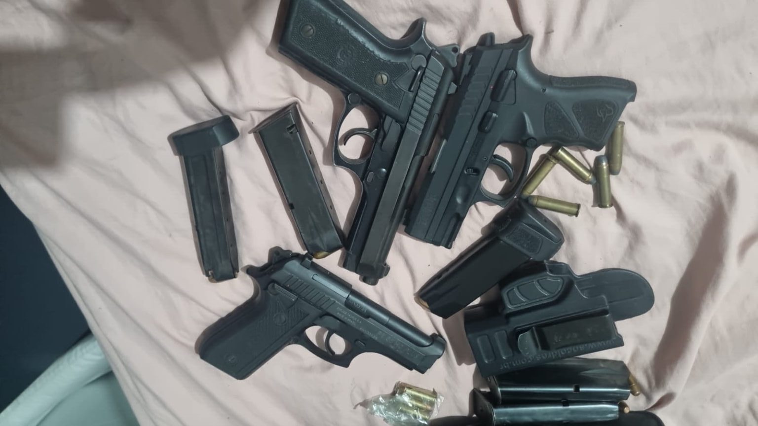 No decorrer das diligências, os policiais civis apreenderam diversas armas de fogo. Entre o material recolhido, foi localizado um revólver calibre .38 sem registro, cujo calibre é compatível com o projétil que vitimou pai e filha. O armamento será submetido à perícia técnica, a fim de verificar eventual ligação direta com o crime investigado.