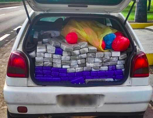 Durante a verificação, os policiais constataram que o condutor era menor de idade. Na sequência, ao realizarem buscas no interior do automóvel, foram localizados centenas de tabletes de maconha, além de pacotes de skunk. Ao todo, a carga ultrapassou 580 quilos de drogas.