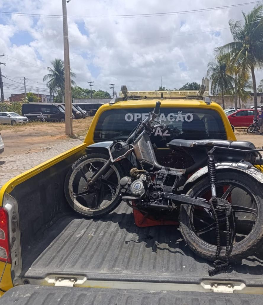 A ocorrência foi registrada no bairro das Rocas, quando os policiais perceberam um ciclomotor circulando sem placa e sem retrovisores. Ao receber a ordem de parada, o condutor iniciou fuga pelas vias da região, adotando manobras que colocaram em risco a segurança de pedestres e demais usuários da via.